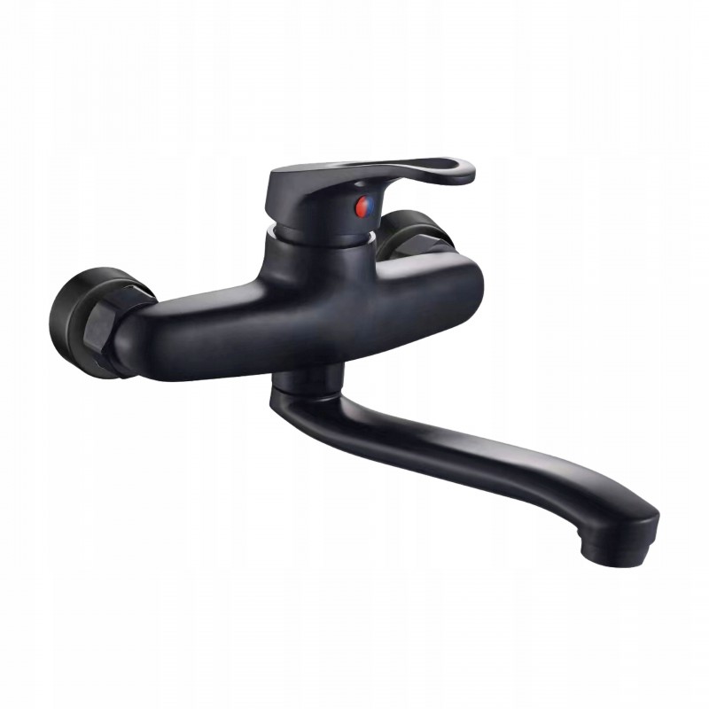 Bateria umywalkowa łazienkowa kran Durasan czarna długa wylewka ścienna