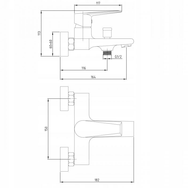 Bateria wannowo-prysznicowa ścienna Durasan ORLANDO 1-uchwytowa