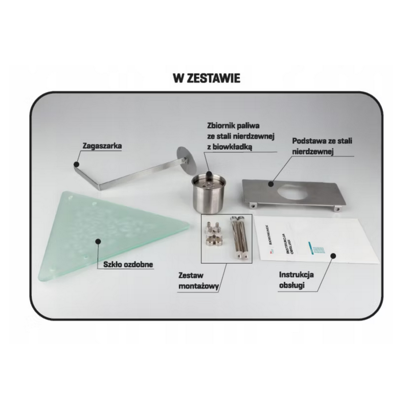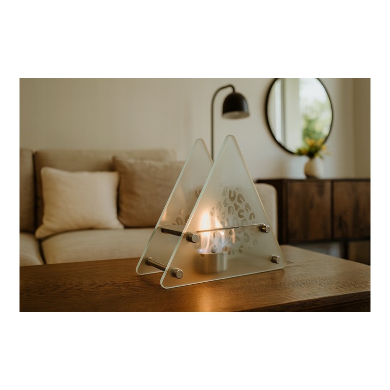 Biokominek Trigona marki DuraHealth to wyrafinowane połączenie nowoczesnego designu i funkcjonalności. Wyposażony w szkło o mrożonym wykończeniu z dekoracyjnym wzorem, ten biokominek o pojemności zbiornika paliwa 0,15 l stanowi elegancką ozdobę dla każdego wnętrza.