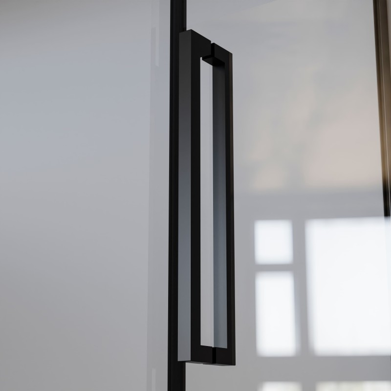 Ich szkło hartowane o grubości 8 mm zapewnia nie tylko solidność, ale także bezpieczeństwo użytkowania. Transparentny kolor szkła sprawia, że wnętrze prysznica jest jasne i przestronne, dodając elegancji całej przestrzeni. Profile aluminiowe w czarnym matowym wykończeniu nadają drzwiom nowoczesny wygląd, podkreślając ich styl.