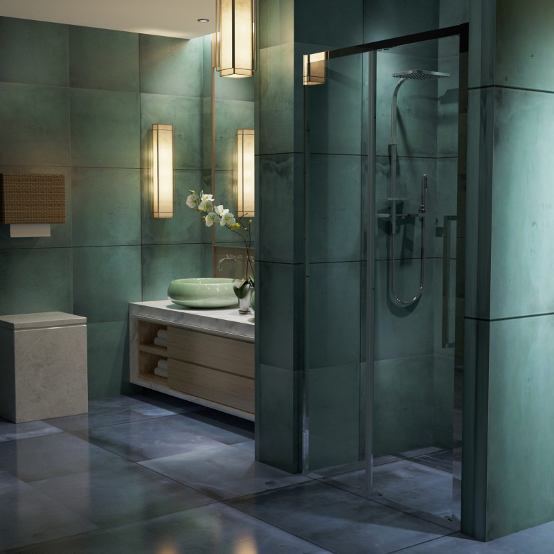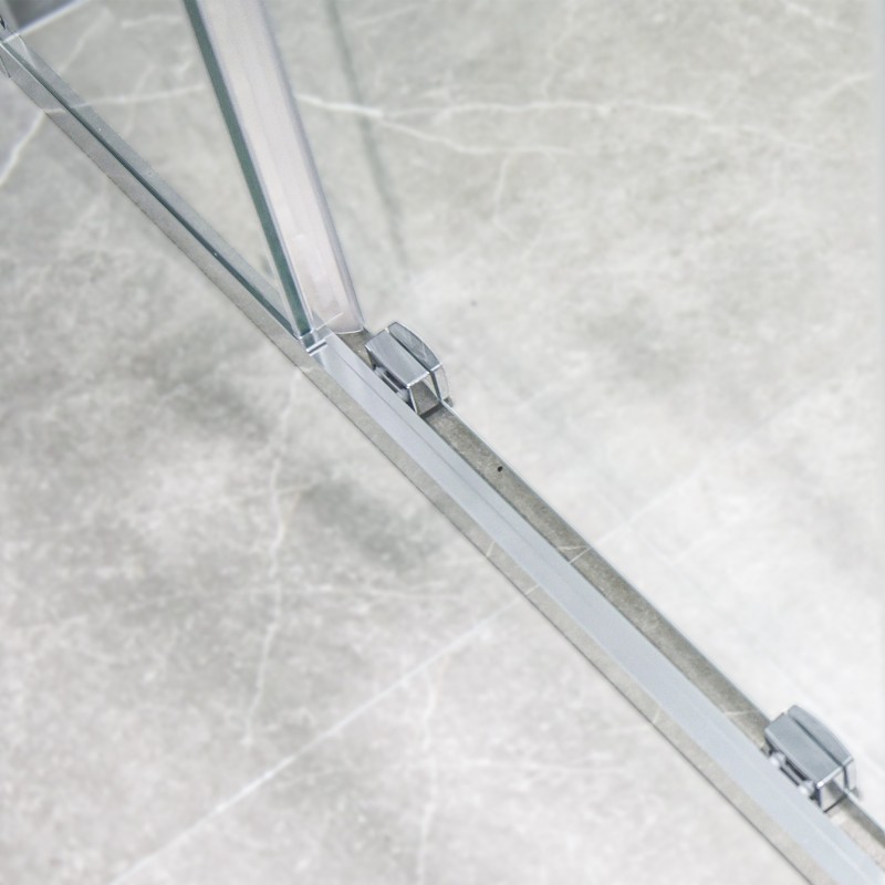 Najważniejszym elementem drzwi jest szkło hartowane o grubości 8 mm, które gwarantuje wysoki poziom bezpieczeństwa oraz trwałość na lata. Tafle są stabilne, odporne na naprężenia i uszkodzenia mechaniczne, co jest kluczowe przy codziennym użytkowaniu. Powierzchnia szkła została pokryta powłoką Nano Glass, dzięki czemu osad z wody czy mydła nie przylega do tafli. Ułatwia to utrzymanie drzwi w czystości i znacznie zmniejsza częstotliwość konserwacji. Drzwi wyposażono w wygodny, podwójny uchwyt aluminiowy, który zapewnia pewny chwyt i komfort podczas otwierania oraz zamykania. Jego ergonomiczny kształt sprawia, że korzystanie z drzwi jest intuicyjne i wygodne nawet mokrą dłonią. Cała konstrukcja pracuje lekko i płynnie, a prowadnice zostały zaprojektowane tak, aby zapewniać stabilność skrzydła oraz cichą pracę mechanizmu. Dodatkowym atutem jest możliwość montażu drzwi zarówno po prawej, jak i po lewej stronie, co ułatwia dopasowanie ich do konkretnej aranżacji łazienki. Profil umożliwia również kompensację nierówności ściany do 15 mm, co jest praktycznym rozwiązaniem szczególnie w starszych budynkach.