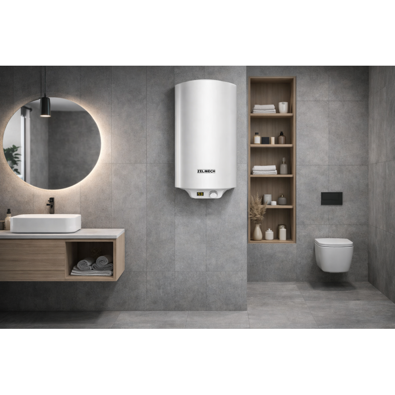 Elektryczny podgrzewacz wody Zelmech ZL-ZV30WH o pojemności 30 litrów to funkcjonalne i sprawdzone rozwiązanie do codziennego użytkowania w mniejszych gospodarstwach domowych. Doskonale sprawdzi się w mieszkaniach, kawalerkach, domkach letniskowych czy jako dodatkowe źródło ciepłej wody w kuchni lub łazience. Urządzenie zostało zaprojektowane z myślą o wygodzie montażu i oszczędności miejsca. Pionowa konstrukcja oraz kompaktowe wymiary (65,5 cm wysokości i 35 cm średnicy) pozwalają na łatwe dopasowanie podgrzewacza nawet w ograniczonej przestrzeni. Standardowy rozstaw przyłączy (19,8 cm) ułatwia instalację. Zbiornik wykonany jest ze stali, co zapewnia jego trwałość i odporność na uszkodzenia. Dodatkowym zabezpieczeniem jest anoda magnezowa, która chroni wnętrze zbiornika przed korozją, znacząco wydłużając żywotność urządzenia. To szczególnie ważne przy długotrwałym i intensywnym użytkowaniu. Podgrzewacz został wyposażony w warstwę izolacji z pianki poliuretanowej o grubości 25 mm. Dzięki temu ograniczone są straty ciepła, co wpływa na większą efektywność pracy i mniejsze zużycie energii. Klasa energetyczna B potwierdza jego ekonomiczne działanie. Moc 1500 W pozwala na sprawne podgrzewanie wody, a urządzenie umożliwia osiągnięcie temperatury do 75°C. Wbudowany mechaniczny termostat zapewnia prostą i wygodną regulację temperatury, dzięki czemu użytkownik może dostosować pracę urządzenia do swoich potrzeb. Podgrzewacz został wyposażony w niezbędne zabezpieczenia, które chronią zarówno urządzenie, jak i użytkownika podczas eksploatacji. Stabilna konstrukcja i sprawdzone rozwiązania techniczne przekładają się na bezproblemowe użytkowanie przez długi czas. Całość utrzymana jest w uniwersalnym, białym kolorze, który dobrze komponuje się z większością wnętrz. Zelmech ZL-ZV30WH to solidny wybór dla osób, które szukają prostego, trwałego i wydajnego podgrzewacza wody do codziennego użytku.