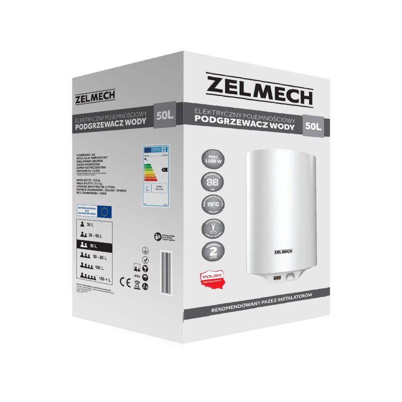 Elektryczny bojler z wyświetlaczem i regulacją bojler 50L biały Zelmech ZL-ZV50WH wysoka klasa energetyczna