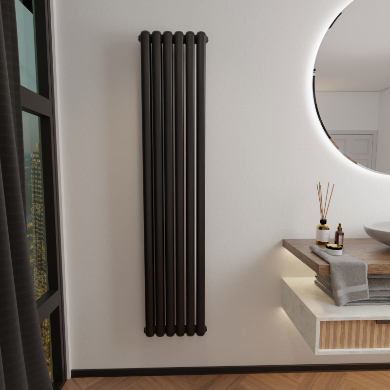RETRO marki Duraterm w kolorze czarnym to grzejnik, który od razu przyciąga uwagę swoim eleganckim, głębokim wykończeniem i klasycznym charakterem. Stylizowane, zaokrąglone żebra nawiązują do wzornictwa dawnych dekad, dzięki czemu model staje się wyjątkowym elementem dekoracyjnym zarówno w tradycyjnych łazienkach, jak i w nowoczesnych, loftowych aranżacjach. Czerń dodaje mu wyrazistości, podkreśla styl wnętrza i wprowadza efekt ponadczasowej elegancji, która idealnie komponuje się z jasnymi kaflami, drewnem, betonem czy industrialnymi detalami.