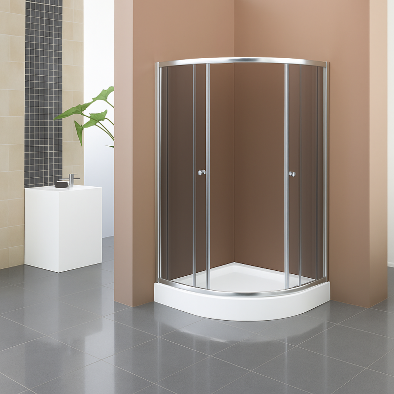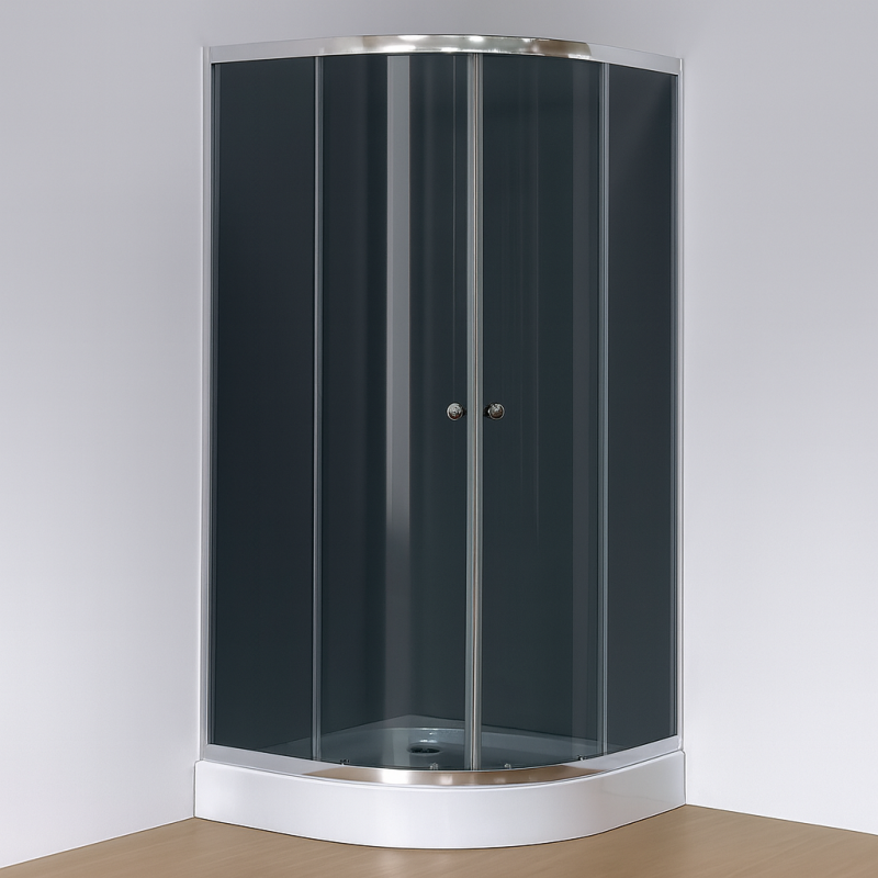 Kabina prysznicowa Breezz TT 120 DARK 90×90 to budżetowy, kompletny zestaw z brodzikiem, idealny do małych i średnich łazienek. Półokrągły kształt pozwala wygodnie ustawić ją w rogu i odzyskać sporo miejsca w strefie kąpielowej. Drzwi przesuwne pracują lekko, nie wymagają wolnej przestrzeni przy otwieraniu i świetnie sprawdzają się w kompaktowych wnętrzach. Chromowane detale podkreślają prosty, czysty design, a przyciemniane szyby z hartowanego szkła dodają nowoczesnego charakteru i są odporne na codzienne użytkowanie. W komplecie znajduje się brodzik, więc cały zestaw jest gotowy do montażu od razu po wyjęciu z pudełka. Produkt jest poekspozycyjny, w pełni sprawny i wolny od wad — dzięki temu można kupić go w bardzo dobrej cenie, bez kompromisu pod względem jakości czy funkcjonalności. To solidna, praktyczna propozycja dla osób szukających dobrego rozwiązania w rozsądnym budżecie.