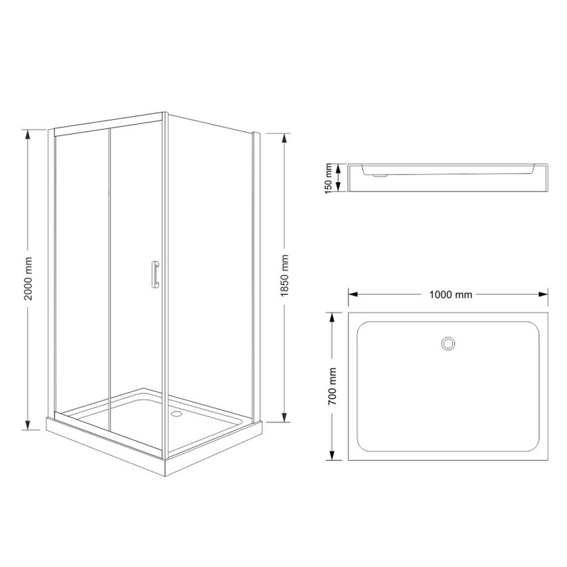 Kabina prysznicowa Durasan 100x70 prostokątna chrom w zestawie z brodzikiem