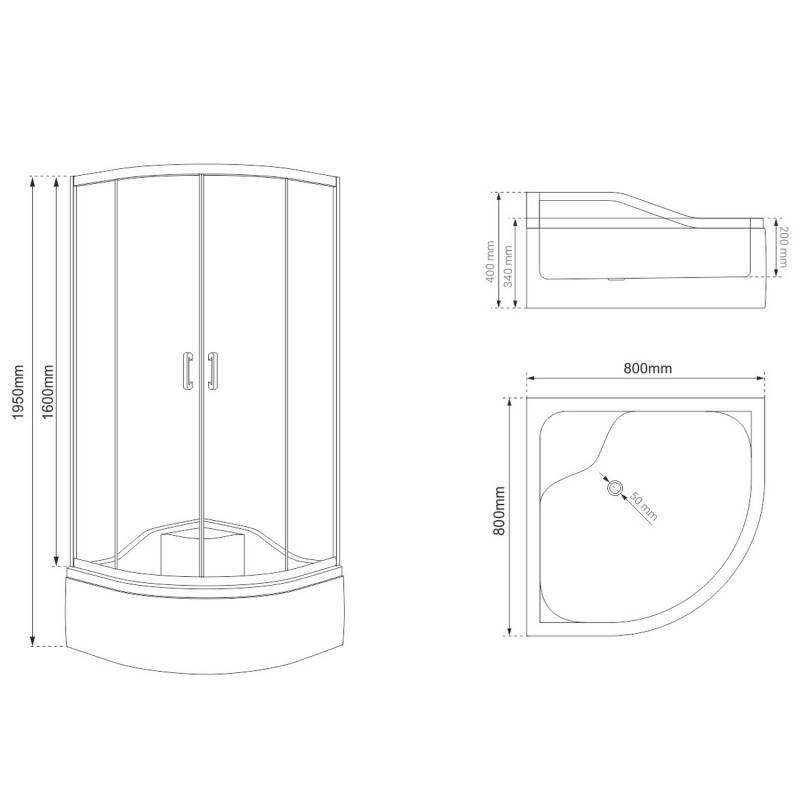 Kabina prysznicowa Durasan 80x80 półokrągła czarny mat z wysokim brodzikiem w zestawie