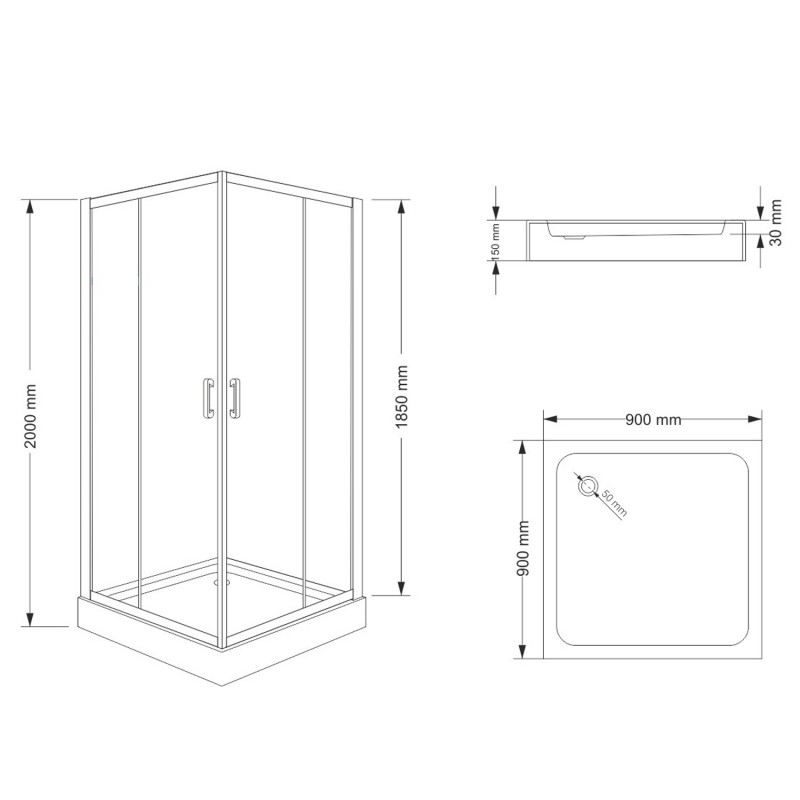 Kabina prysznicowa Durasan 90x90 kwadratowa chrom z niskim brodzikiem w zestawie