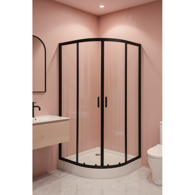 Kabina DAKALI wyposażona jest w przesuwne drzwi, które gwarantują wygodny dostęp oraz pozwalają maksymalnie wykorzystać przestrzeń – idealne rozwiązanie do łazienek, w których każdy centymetr ma znaczenie. Jej półokrągły kształt nadaje wnętrzu lekkości i nowoczesnego wyglądu, a transparentne szkło w połączeniu z czarnymi profilami tworzy efektowny kontrast, dodając łazience wyjątkowego stylu. W zestawie znajduje się niski brodzik, który zapewnia wysoki komfort użytkowania i skutecznie chroni łazienkę przed rozchlapywaniem wody. To praktyczne i estetyczne rozwiązanie, które podnosi funkcjonalność całego zestawu. Kabina prysznicowa DAKALI 90x90 z brodzikiem to połączenie jakości, stylu i wygody w najlepszej formie. To idealny wybór dla osób, które chcą stworzyć nowoczesną, elegancką i komfortową strefę prysznicową w swojej łazience.