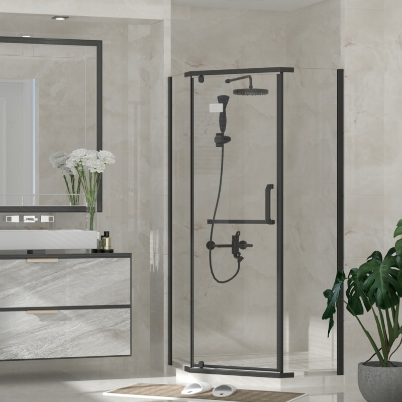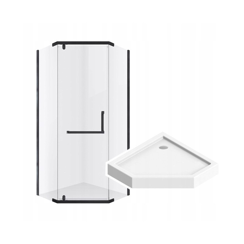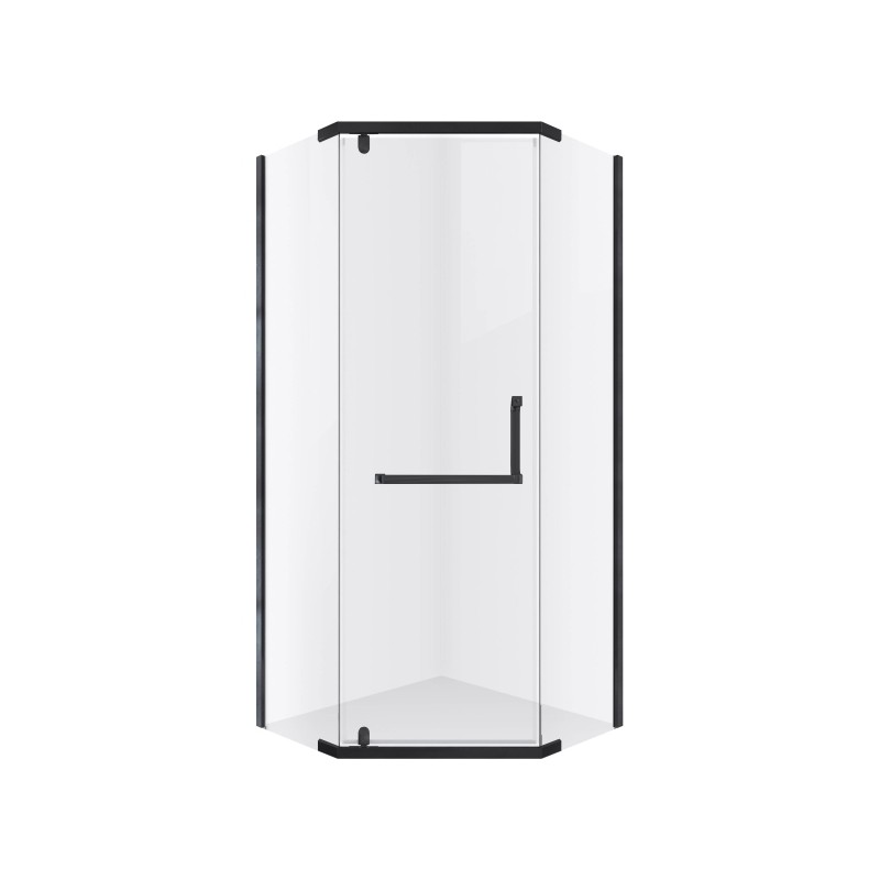 Kabina DIAMOND wyróżnia się pięciokątnym kształtem, który pozwala na optymalne wykorzystanie przestrzeni, szczególnie w mniejszych i średnich łazienkach. Czarne profile nadają konstrukcji elegancki, industrialny charakter i doskonale komponują się zarówno z nowoczesnymi, jak i loftowymi aranżacjami wnętrz. Zastosowane grube szkło hartowane cechuje się wysoką odpornością na uszkodzenia mechaniczne oraz intensywne użytkowanie. Transparentne szyby zapewniają lekkość wizualną, optycznie powiększają przestrzeń i umożliwiają lepsze doświetlenie strefy prysznicowej. To rozwiązanie, które łączy estetykę z funkcjonalnością. Kabina wyposażona jest w uchylne drzwi, które pracują płynnie i cicho, zapewniając wygodę codziennego użytkowania. Stabilna konstrukcja gwarantuje bezpieczeństwo, a solidne zawiasy podnoszą komfort otwierania i zamykania drzwi.