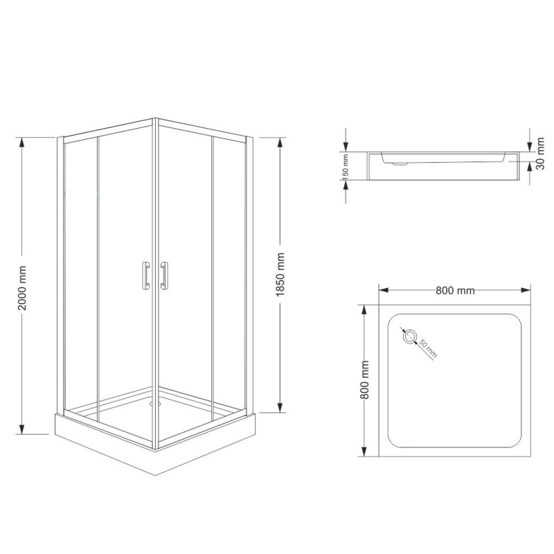 Kabina prysznicowa Durasan NAMELESS 80x80 kwadratowa czarny mat w zestawie z brodzikiem Gryf