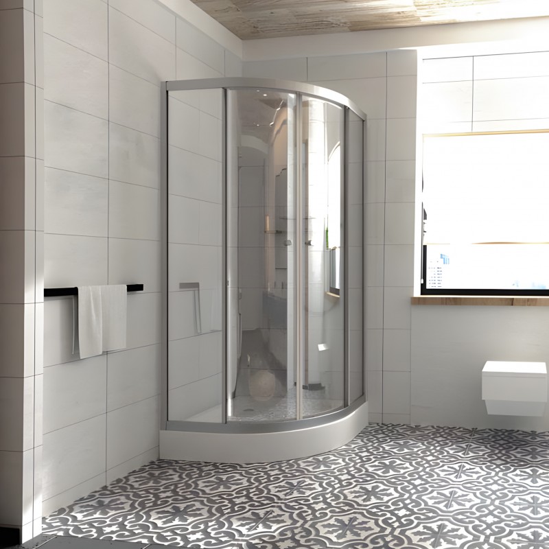 Kabina prysznicowa PROXIMA 90x90 w kolorze chrom z brodzikiem to połączenie elegancji, funkcjonalności i solidnego wykonania. Zestaw ten stanowi kompletne rozwiązanie do każdej łazienki, łącząc wygodę użytkowania z nowoczesnym stylem. Dzięki swoim kompaktowym wymiarom idealnie sprawdzi się w mniejszych pomieszczeniach lub w łazienkach o niestandardowym układzie, zapewniając komfortowy prysznic bez zajmowania nadmiaru przestrzeni. Kabina PROXIMA została wykonana z wysokiej jakości szkła hartowanego o grubości 4 mm, które jest nie tylko wytrzymałe, ale także bezpieczne w codziennym użytkowaniu. Przezroczyste szkło optycznie powiększa przestrzeń i dodaje wnętrzu lekkości, a jego gładka powierzchnia ułatwia czyszczenie. Całość konstrukcji dopełniają aluminiowe profile w eleganckim wykończeniu chrom, które nadają kabinie nowoczesny charakter i chronią ją przed korozją. Drzwi kabiny otwierają się lekko i płynnie, co zwiększa komfort korzystania z prysznica, a szczelne uszczelki skutecznie zapobiegają przedostawaniu się wody na zewnątrz. Dołączony do zestawu brodzik idealnie dopasowuje się do kabiny, tworząc spójną i estetyczną całość. Jego odpowiednia głębokość oraz antypoślizgowa powierzchnia zapewniają bezpieczeństwo i wygodę podczas kąpieli.