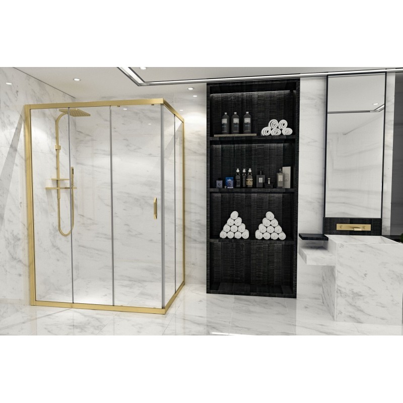 Złote wykończenie kabiny FLEXI GOLD to esencja nowoczesnego luksusu. Szlachetny połysk i subtelne detale tworzą wyjątkowy klimat w łazience, dodając jej prestiżu i elegancji. Każdy element został zaprojektowany z dbałością o najmniejsze szczegóły, by zachwycać wyglądem i trwałością przez lata. Prostokątny kształt kabiny łączy minimalizm i praktyczność, dzięki czemu doskonale komponuje się zarówno z wnętrzami w stylu glamour, jak i z nowoczesnymi, stonowanymi aranżacjami. To idealne rozwiązanie dla osób, które chcą, by ich łazienka wyróżniała się stylem i funkcjonalnością.