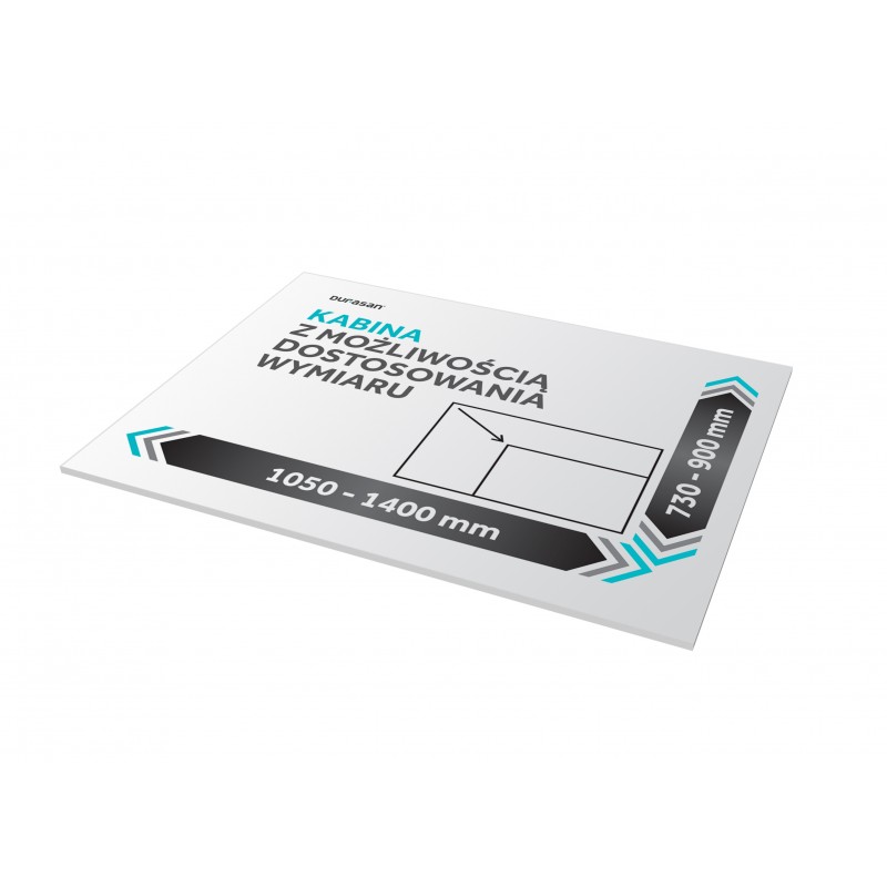 Dostosowanie rozmiaru kabiny odbywa się poprzez docięcie do porządanego rozmiaru profili poziomych oraz przesunięciu i nałożeniu na siebie szyb bocznych. |