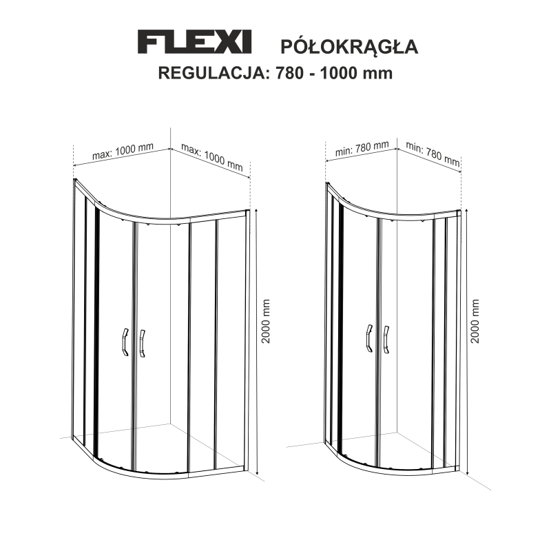 Kabina prysznicowa półokrągła Flexi regulowana 78-100x78-100 cm |