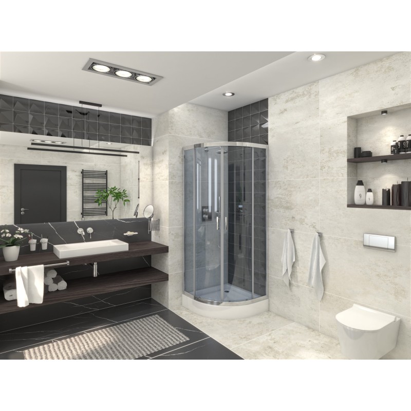 Kabina prysznicowa Kabi IDEAL 80 x 80 to doskonałe rozwiązanie dla łazienek o mniejszym metrażu, w których liczy się każdy centymetr przestrzeni. Jej półokrągły kształt oraz możliwość montażu w rogu pomieszczenia pozwalają na optymalne wykorzystanie dostępnego miejsca, zapewniając jednocześnie pełen komfort użytkowania. Kabina jest przystosowana do montażu bez brodzika, dzięki czemu idealnie wpisuje się w nowoczesne aranżacje łazienek typu walk-in. Wyposażona w przesuwne drzwi z metalowymi uchwytami, zapewnia wygodę, elegancję i skuteczną ochronę przed rozpryskiem wody. Drzwi wykonane z hartowanego szkła w kolorze grafitowym nadają konstrukcji stylowy, nowoczesny wygląd, a chromowane profile aluminiowe doskonale komponują się z minimalistycznymi wnętrzami utrzymanymi w tonacjach szarości, bieli, beżu lub czerni. Dla osób, które preferują tradycyjne rozwiązania, istnieje możliwość dokupienia dopasowanego brodzika, dzięki czemu kabinę można zainstalować również w klasyczny sposób – podnosząc komfort użytkowania i ułatwiając utrzymanie czystości. Kabina Kabi IDEAL 80 x 80 może być montowana w wersji lewej lub prawej, co zapewnia elastyczność dopasowania do konkretnego układu łazienki. To połączenie funkcjonalności, estetyki i wygody, które doskonale sprawdzi się w każdej przestrzeni.