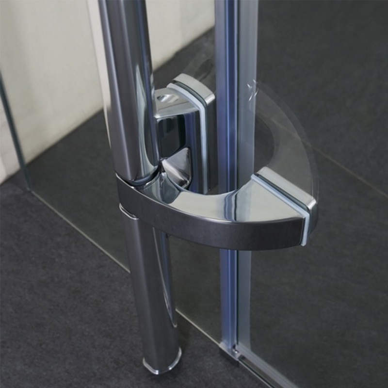 Model FERRARA wyróżnia się szkłem hartowanym o grubości 6 mm, które nie tylko zapewnia bezpieczeństwo, ale także elegancko prezentuje się w każdej aranżacji. Przezroczyste tafle szkła pięknie odbijają światło, optycznie powiększając przestrzeń, a profil w kolorze chrom dodaje całości subtelnego blasku i nowoczesnego stylu. Na uwagę zasługuje także designerski uchwyt, który nie jest jedynie praktycznym elementem, ale stanowi ozdobę całej konstrukcji. Jego ergonomiczny kształt sprawia, że otwieranie i zamykanie drzwi jest wygodne i płynne, a minimalistyczna forma idealnie wpisuje się w trendy współczesnych wnętrz.
