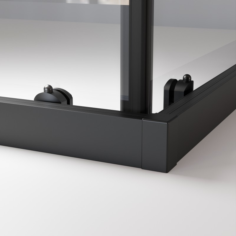 Kabina charakteryzuje się solidną konstrukcją, w której niektóre parametry pozostają stałe dla zapewnienia najwyższej jakości. Wysokość produktu wynosi 200 cm, a grubość szyb to 6 mm dla bocznych elementów i 8 mm dla drzwi. Każdy element kabiny wykonany jest z najwyższej klasy materiałów, takich jak wytrzymałe metalowe rolki i uchwyty, które gwarantują płynność działania i trwałość na lata.