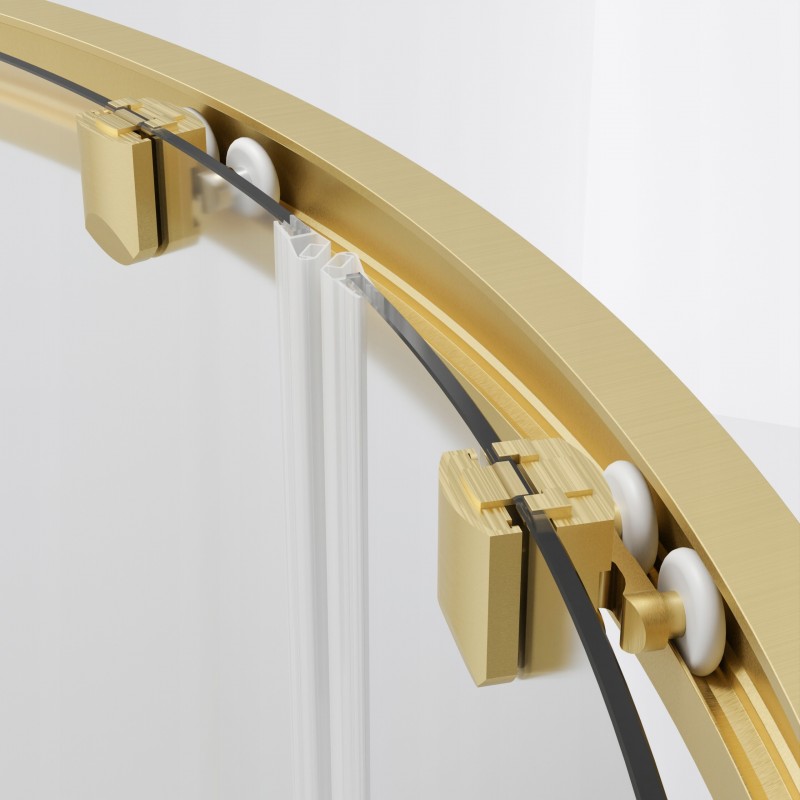 Z imponującą wysokością 200 cm i promieniem R55, kabina FLEXI R55 GOLD BR wyróżnia się nie tylko komfortem, ale także nowoczesnym designem. Szkło transparentne o grubości 6 mm (dla szyb drzwiowych) i 8 mm (dla szyb bocznych) gwarantuje trwałość i bezpieczeństwo. Metalowe rolki górne i dolne oraz uchwyty dodają solidności konstrukcji, zapewniając jednocześnie łatwe otwieranie i zamykanie drzwi. Możliwość niwelacji krzywizny ściany sprawia, że montaż jest prosty i dostosowany do indywidualnych potrzeb.