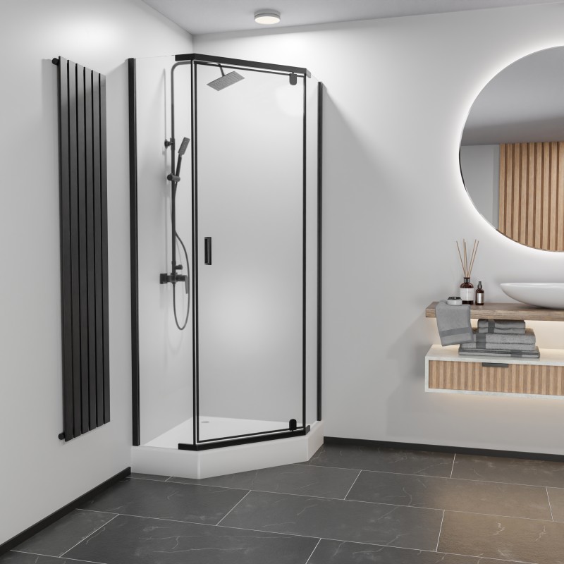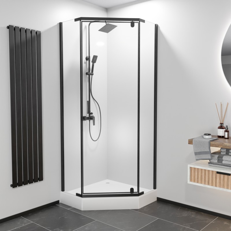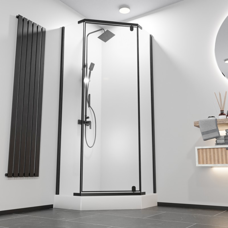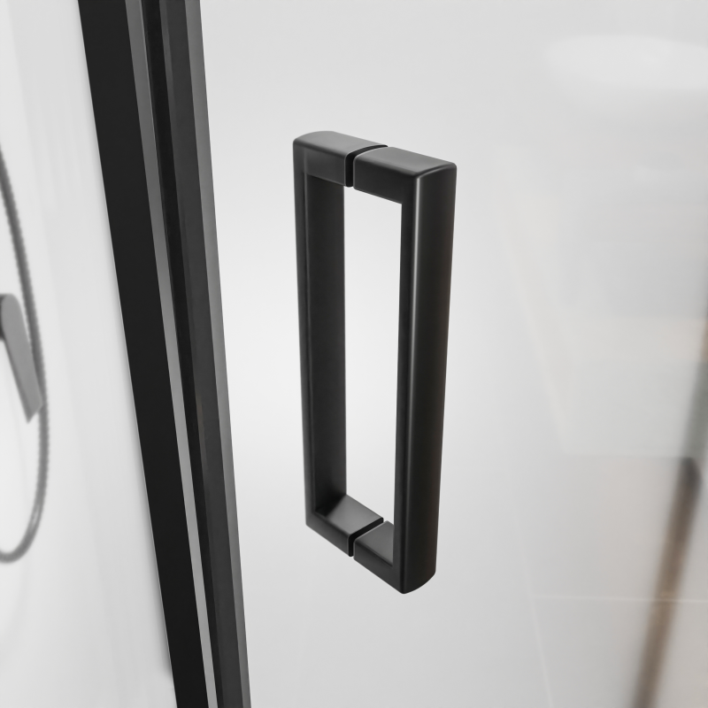 Kabina Prysznicowa STELLA BLACK 90x90x210 to świetny wybór, jeśli urządzasz łazienkę w nowoczesnym stylu i chcesz postawić na rozwiązanie, które wygląda elegancko, a przy tym jest wygodne w codziennym użytkowaniu. Czarne wykończenie dodaje całości charakteru i podkreśla minimalistyczny design, dzięki czemu kabina dobrze komponuje się zarówno z jasnymi, jak i ciemniejszymi aranżacjami. To model, który nie dominuje wnętrza formą, ale robi wrażenie detalem i dopracowanym wyglądem. Konstrukcję wykonano z hartowanego szkła o grubości 6 mm. Takie szkło jest odporne na uszkodzenia i bezpieczne podczas użytkowania, a przy tym prezentuje się lekko i estetycznie. Kabina została zaprojektowana z myślą o komforcie, dlatego zastosowano uchylne drzwi, które ułatwiają wejście i wyjście oraz pozwalają wygodnie korzystać z prysznica nawet w mniejszych łazienkach. Solidne, metalowe podwójne rączki są trwałe, dobrze leżą w dłoni i stanowią spójny element stylistyczny z czarnymi profilami.