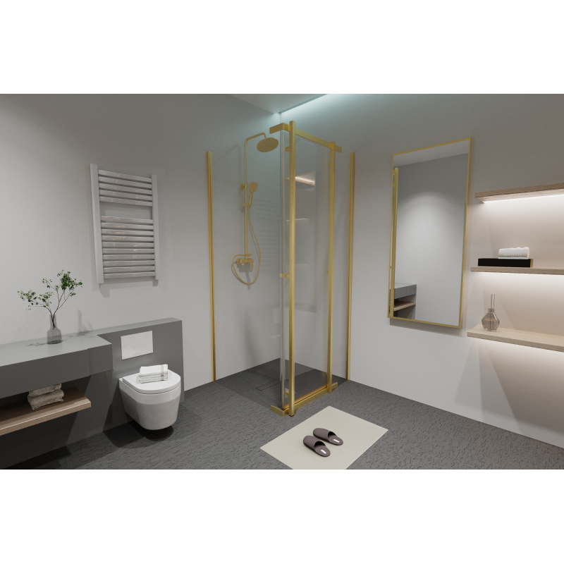 Kabina prysznicowa TITANIUM 90x90 cm w kolorze złoto szczotkowane (gold brush) to propozycja dla osób ceniących elegancję, komfort oraz solidne wykonanie. To nie tylko funkcjonalny element wyposażenia łazienki, ale również stylowy akcent, który nadaje wnętrzu luksusowy i ponadczasowy charakter.