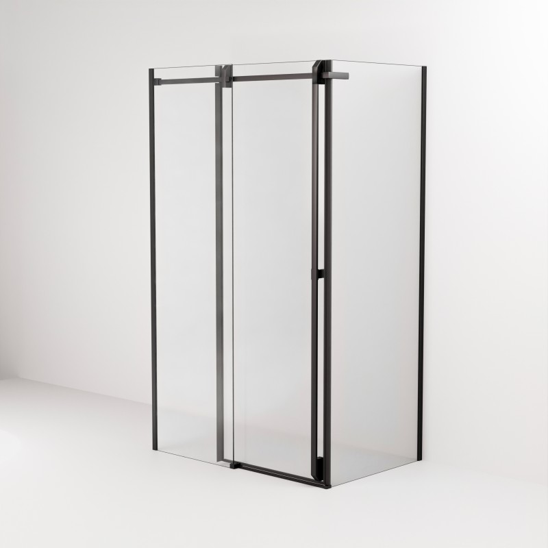 Model TITANIUM SLIDE wyposażono w drzwi przesuwne, które są doskonałym rozwiązaniem do łazienek z ograniczoną przestrzenią. System przesuwny zapewnia płynne i ciche otwieranie, a jednocześnie eliminuje konieczność pozostawiania wolnego miejsca przed kabiną. Solidne prowadnice oraz precyzyjne wykonanie gwarantują trwałość i niezawodność użytkowania. Kabina wykonana jest z hartowanego szkła o grubości 8 mm, które zapewnia wysoki poziom bezpieczeństwa, stabilności i odporności na uszkodzenia. Tafle szkła zostały pokryte nowoczesną powłoką Nano Glass, skutecznie ograniczającą osadzanie się kamienia, smug i zabrudzeń, co znacząco ułatwia utrzymanie kabiny w czystości. Wysokość 200 cm nadaje konstrukcji smukły, elegancki wygląd i optycznie powiększa przestrzeń kąpielową. Kabinę można montować na brodziku lub bezpośrednio na płytkach, co daje pełną swobodę aranżacyjną.
