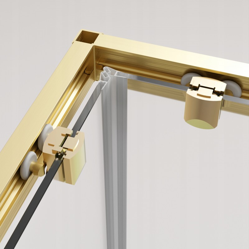 Z imponującą wysokością 200 cm, kabina FLEXI KW GOLD BR oferuje komfort podczas korzystania z prysznica. Szkło transparentne o grubości 6 mm dla szyb drzwiowych i 8 mm dla szyb bocznych gwarantuje trwałość i bezpieczeństwo. Metalowe rolki górne i dolne oraz uchwyty dodają solidności konstrukcji, umożliwiając jednocześnie płynne otwieranie i zamykanie drzwi. Niwelacja krzywizny ściany oraz możliwość regulacji wymiarów sprawiają, że montaż jest prosty i dostosowany do indywidualnych potrzeb.