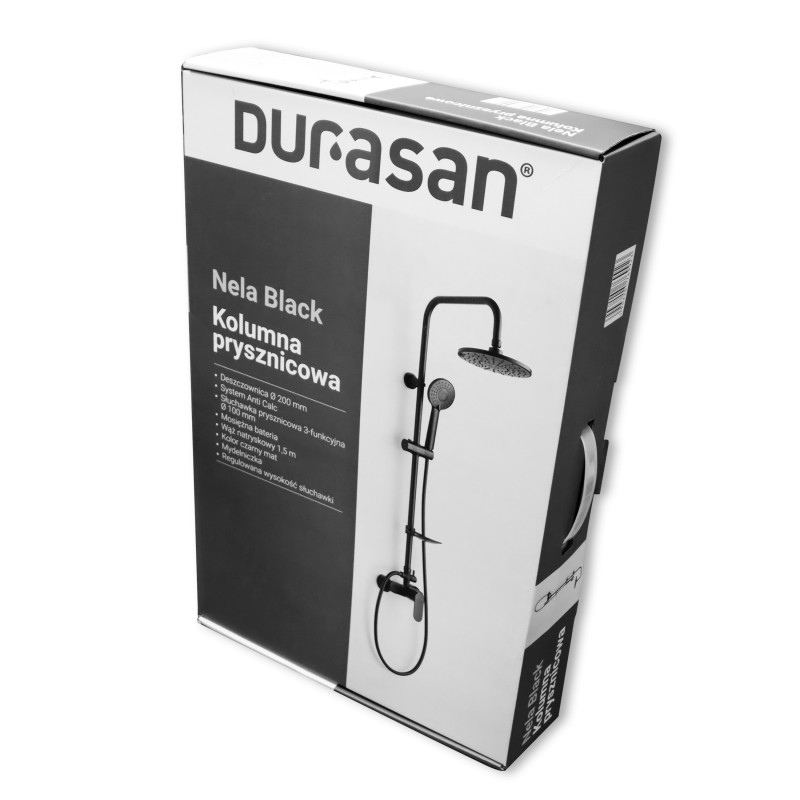 Kolumna prysznicowa drążek Durasan NELA zestaw bateria deszczownica czarna matowa