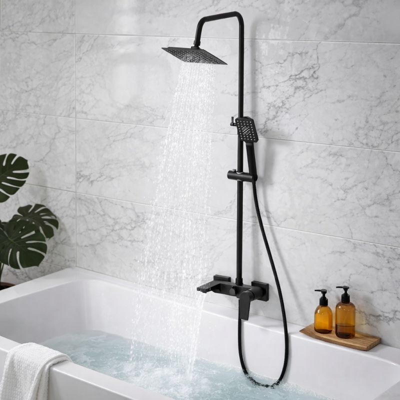 Zestaw prysznicowy kolumna bateria wannowo-prysznicowa deszczownica czarny