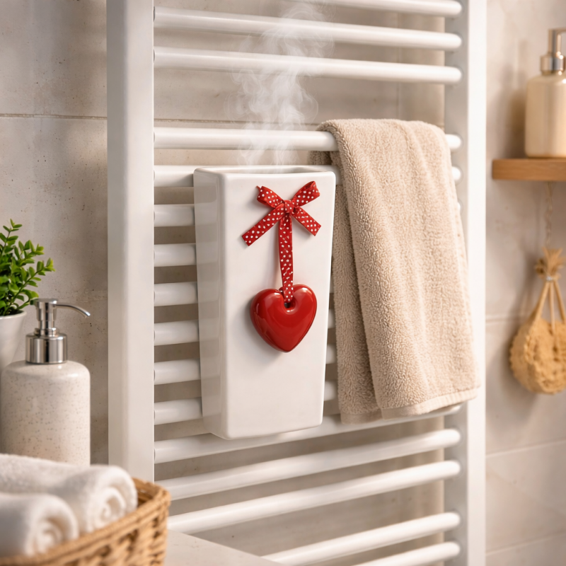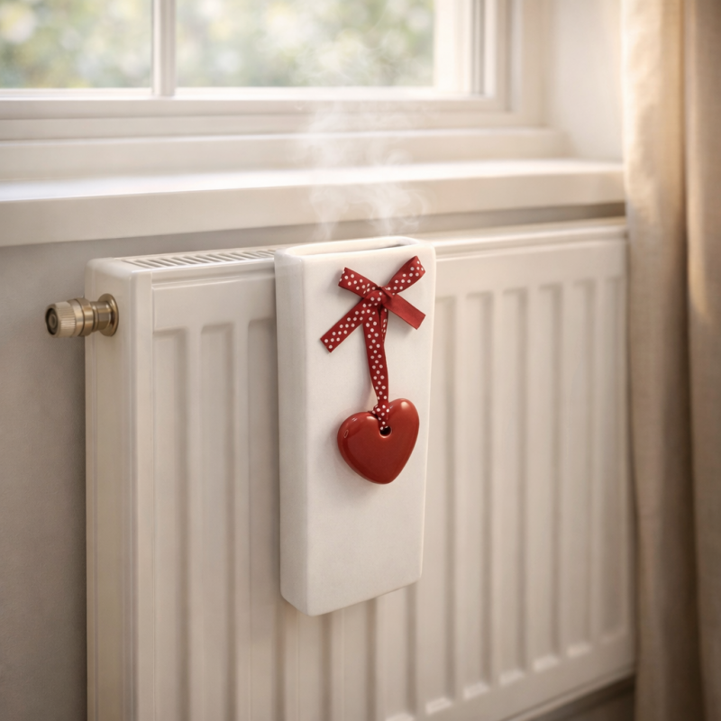Nawilżacz ceramiczny z dekoracyjnym serduszkiem to sprytne połączenie funkcjonalności i uroku, które wnosi do wnętrza nie tylko lepszą jakość powietrza, ale też odrobinę ciepłego klimatu. Subtelny design sprawia, że pasuje praktycznie wszędzie, od nowoczesnego salonu po przytulną sypialnię czy pokój dziecka. Wystarczy zawiesić nawilżacz na kaloryferze, wlać wodę i pozwolić, by zrobił swoje. Ciepło grzejnika delikatnie odparowuje wodę, zwiększając wilgotność powietrza – szczególnie ważną w sezonie grzewczym, gdy powietrze staje się suche i mniej komfortowe. Chcesz czegoś więcej niż samo nawilżanie? Dodaj kilka kropli ulubionego olejku zapachowego i zamień pomieszczenie w strefę relaksu. Przyjemny aromat rozchodzi się razem z parą, tworząc atmosferę idealną do odpoczynku. Ceramiczne wykonanie to nie tylko estetyka, ale też trwałość i dobre utrzymywanie temperatury, co przekłada się na równomierne działanie. Nawilżacz ceramiczny z dekoracyjnym serduszkiem idealnie sprawdzi się jako upominek dla ukochanej osoby.