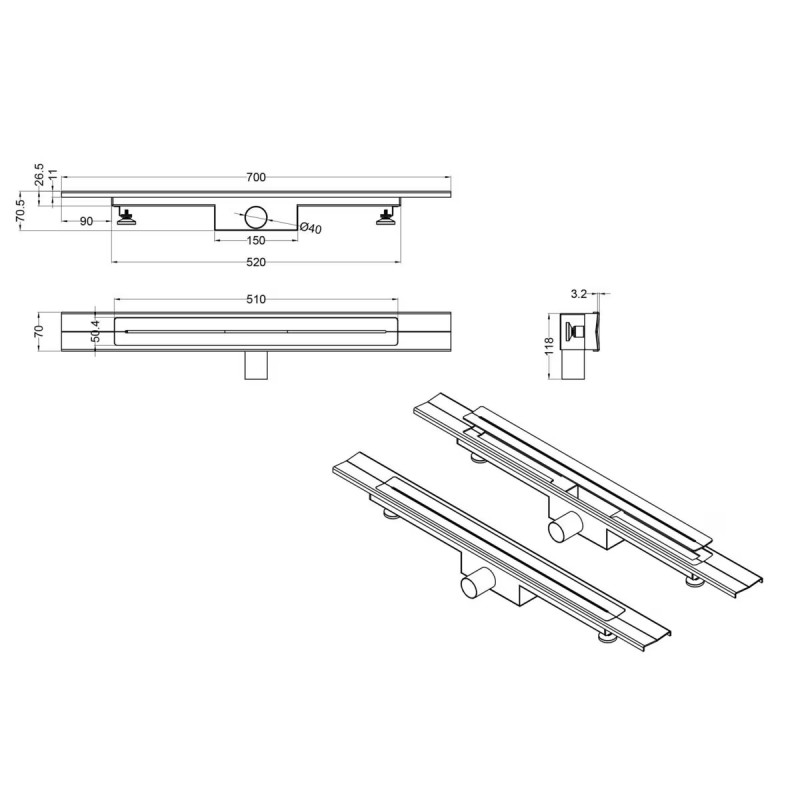 Odwodnienie prysznicowe AVANGARDE 70
