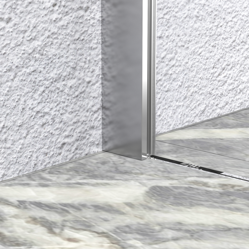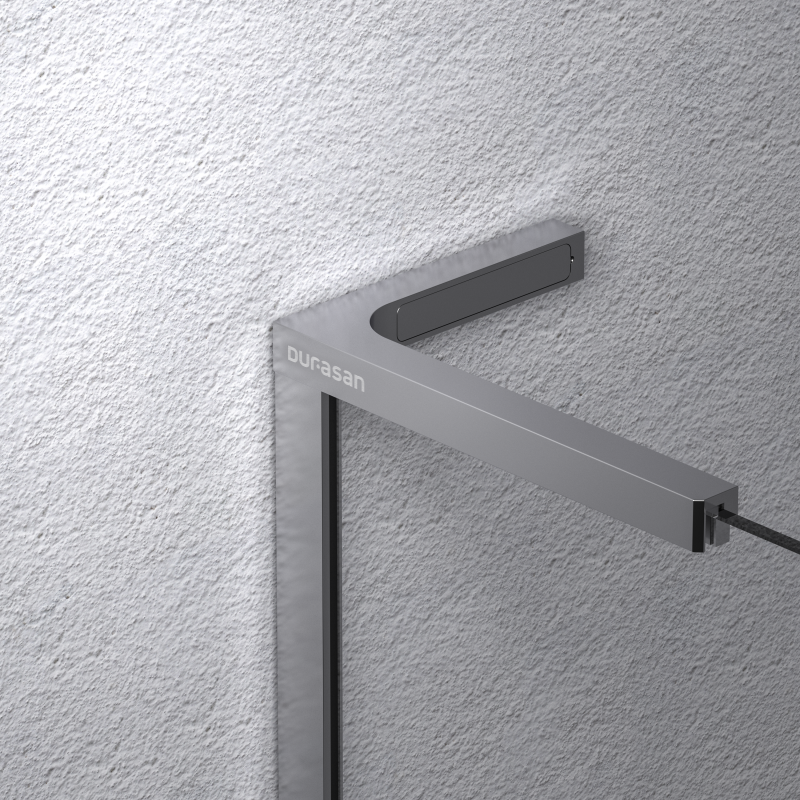 Kabina typu walk-in PURE marki Durasan w wersji transparentnej z chromowanym profilem kątowym to doskonały wybór dla osób, które cenią elegancję, nowoczesność i najwyższą jakość wykonania. Jej prosta, minimalistyczna forma oraz szkło hartowane o grubości 8 mm nadają wnętrzu lekkości i przestronności, tworząc efekt jasnej, otwartej strefy prysznicowej. Chromowany profil kątowy przyciąga uwagę subtelnym połyskiem, który wprowadza do łazienki nutę luksusu i harmonii. Jego lśniące wykończenie doskonale komponuje się z nowoczesną armaturą i dodatkami w kolorze srebra lub stali nierdzewnej, podkreślając elegancki charakter aranżacji. Model PURE w chromie to idealne rozwiązanie do wnętrz utrzymanych w stylu nowoczesnym, glamour, klasycznym lub skandynawskim, gdzie liczy się czystość formy i ponadczasowy design.