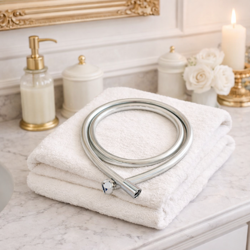 Wąż prysznicowy Bravat 150 cm to połączenie wygody, funkcjonalności i eleganckiego wyglądu, które sprawdzi się w każdej łazience. Jego chromowane wykończenie nadaje całości nowoczesny i stylowy charakter, idealnie komponując się z armaturą w tym samym kolorze. Dzięki optymalnej długości 150 cm, wąż zapewnia pełną swobodę ruchów podczas kąpieli, pozwalając na komfortowe i wygodne korzystanie z prysznica. Wykonany z wysokiej jakości gumy, jest niezwykle trwały, elastyczny i odporny na uszkodzenia. Specjalna konstrukcja zapobiegająca skręcaniu sprawia, że wąż zawsze pozostaje giętki i nie plącze się, nawet przy częstym użytkowaniu. Dodatkowo, jego powierzchnia została wzmocniona powłoką chroniącą przed łamaniem, co gwarantuje niezawodność i długą żywotność produktu. Dzięki uniwersalnemu przyłączu, wąż Bravat pasuje do większości baterii i słuchawek prysznicowych, co czyni go doskonałym wyborem zarówno do nowych, jak i modernizowanych łazienek. To praktyczne i stylowe rozwiązanie, które łączy komfort, trwałość i elegancję w jednym.